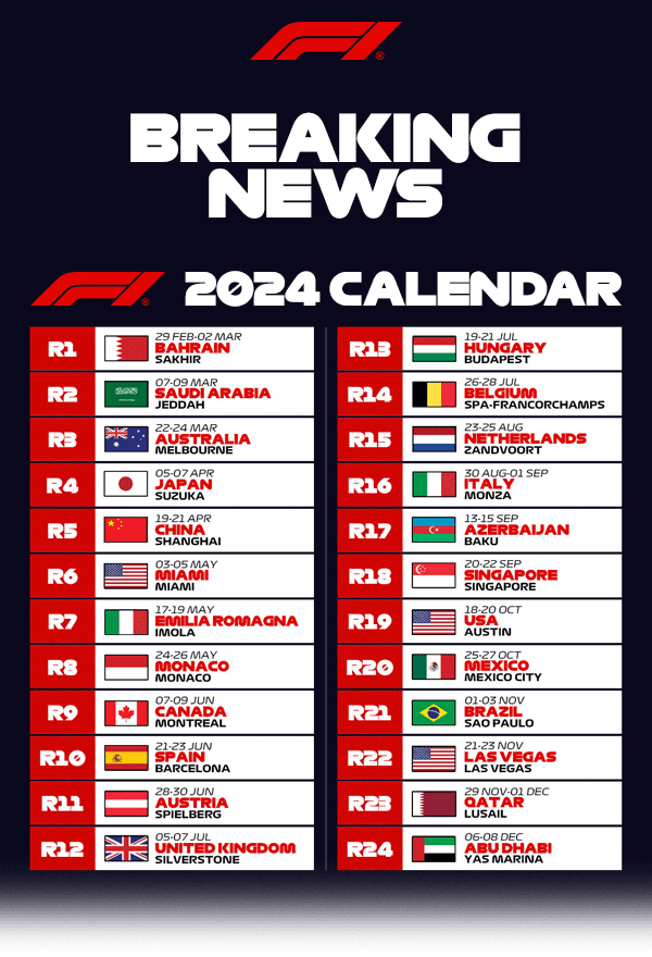 Formula 1 Race Calendar for 2025 Season Announced XploreME, Featuring 24 races that will take place between march and.